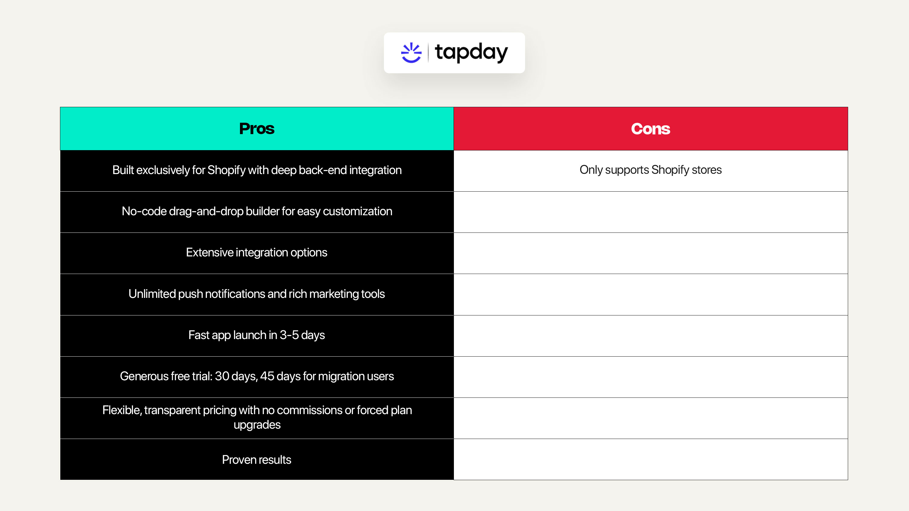 Tapday offers a 30-day free trial to all new users. However, if your store is already on app but you want to migrate, the free trial period extends to 45-days. Tapday’s offers exceptional customer support as their team handles the migration while ensuring all of your app data remains intact.