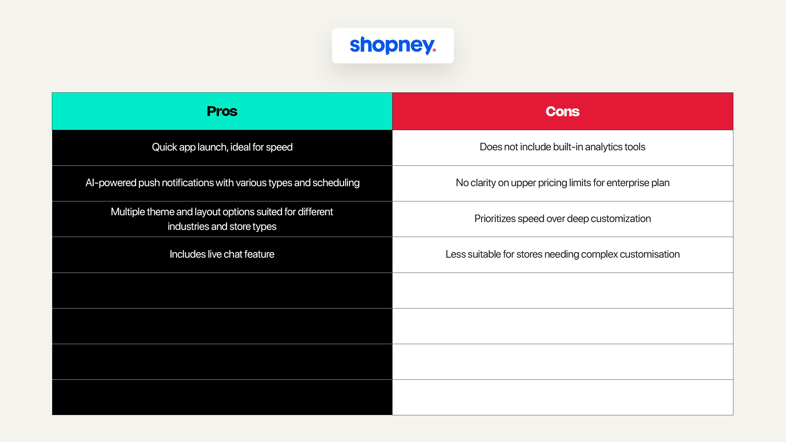 Vajro offers a functional mobile app integration for Shopify, but their pricing structure lacks transparency. While they advertise a starting price of $100, the cost automatically jumps to $500 per month once you reach a certain number of orders—without clear upfront communication. Even if your sales drop below the threshold, they continue charging the higher fee.