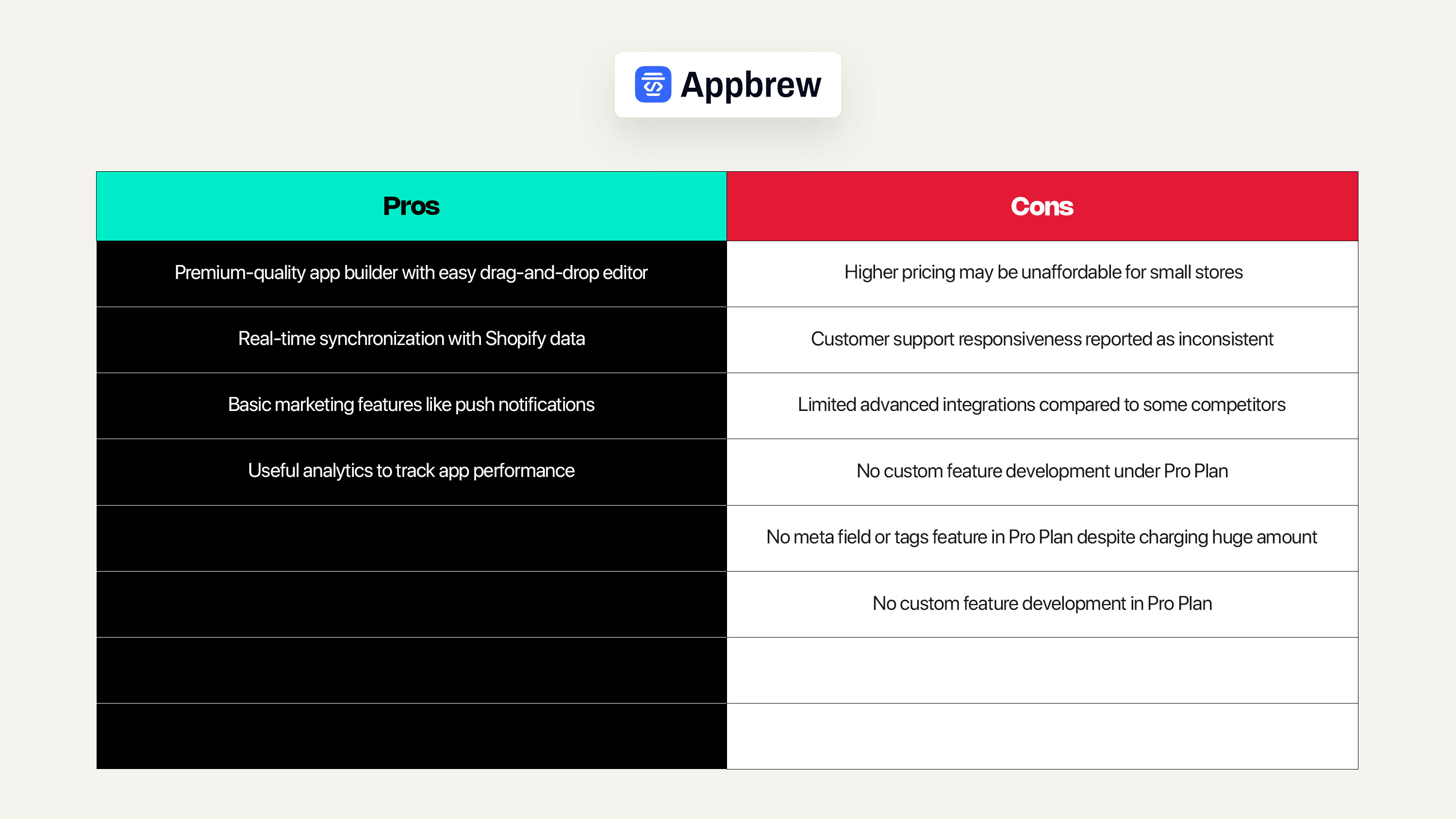 When it comes to the Enterprise solution, Appbrew does not list its pricing publicly. This lack of transparency can make it difficult for Shopify merchants to accurately assess costs or compare value with other platforms, especially when budgeting for scale or pitching to stakeholders.